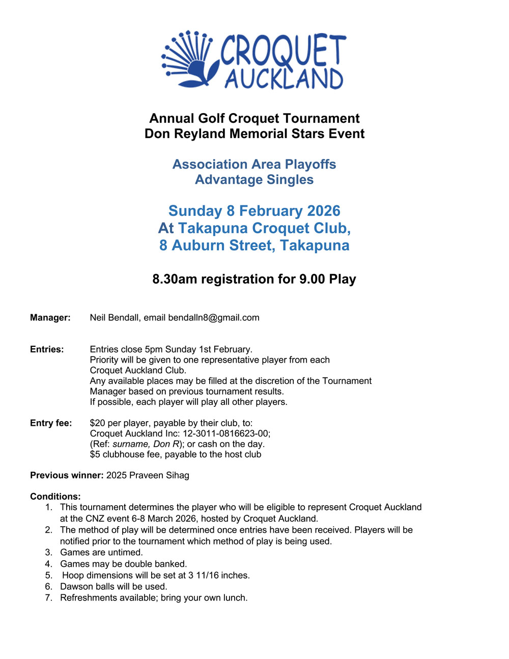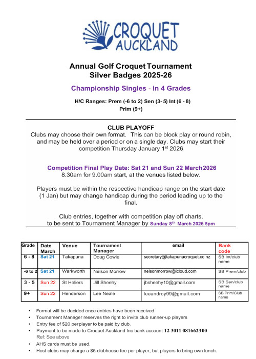 Annual Golf Croquet Tournament Silver Badges 2025-26